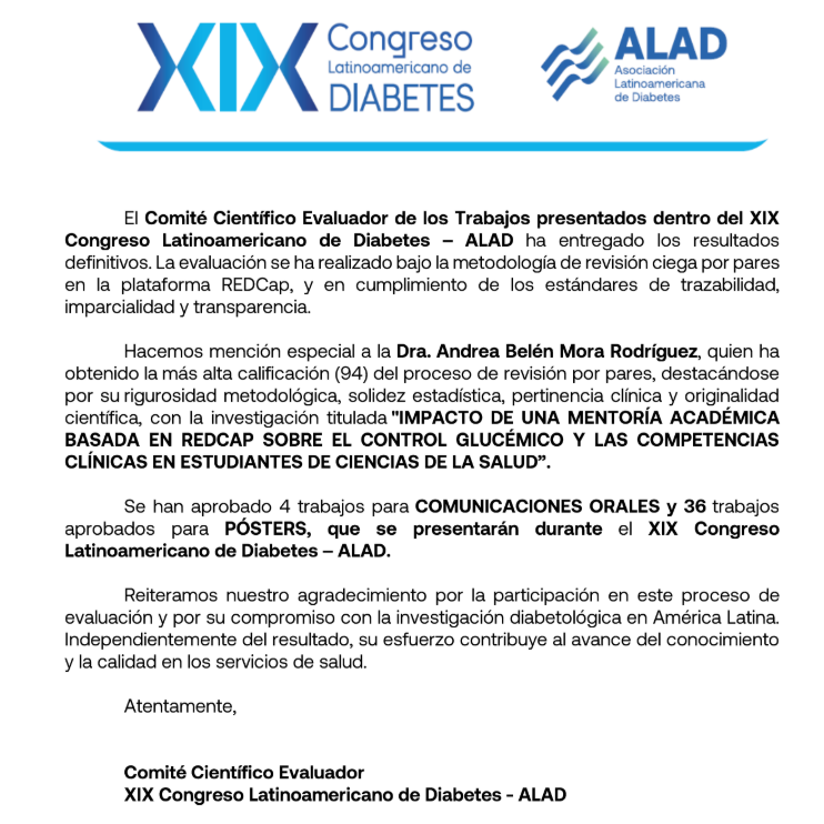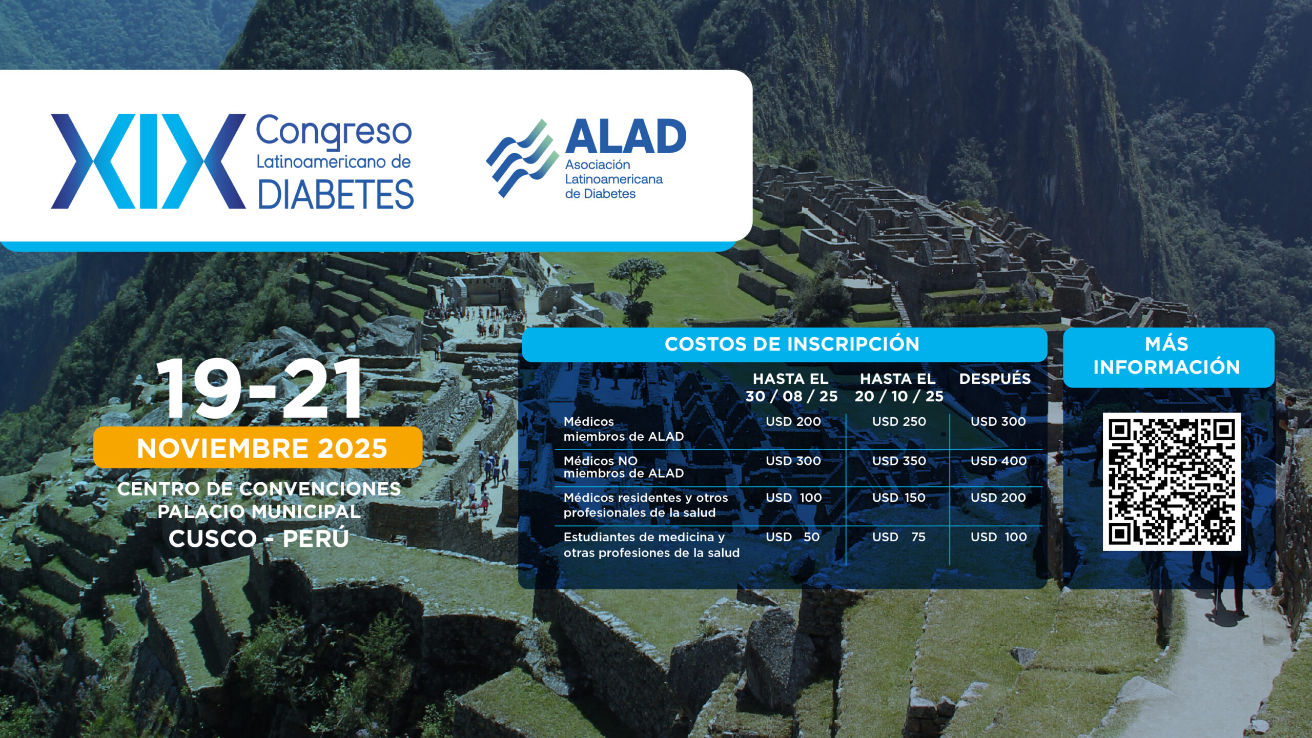El Comité Ejecutivo de la Asociación Latinoamericana de Diabetes – ALAD, en su sesión ordinaria celebrada el 23 de Julio 2024, acordó convocar a una Asamblea General Extraordinaria el día 22 de Agosto del 2024 en Lima, Perú.